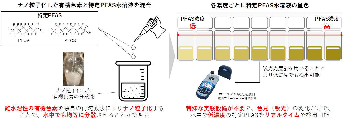 図2 : 有機ナノ色素を用いた特定PFASのリアルタイム検出方法